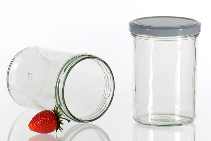 Schraubglas rund.Terrinenform ohne Schulter82er Twist-Off Deckel in weiss, silber oder schwarz.